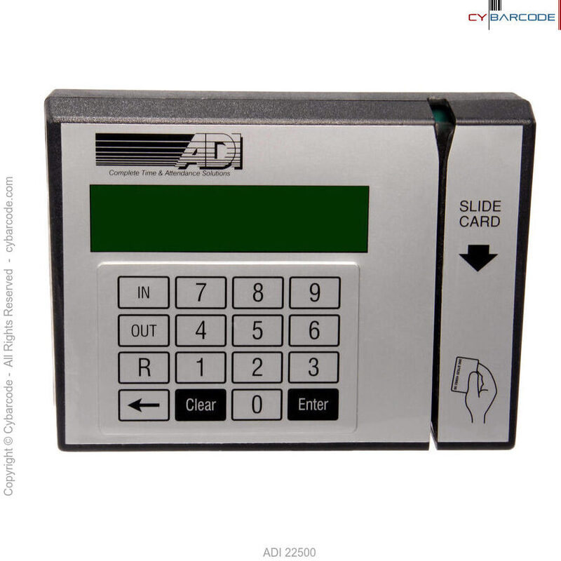 ADI 22500 Time and attendance timeclock.This unit features a badge reader and numeric membrane keypad.
