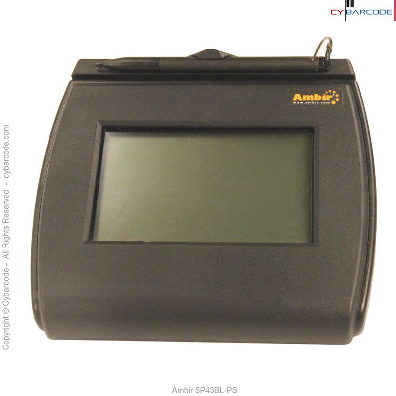The Ambir SP43BL-PS offers a way to conveniently capture, encrypt, and authenticate electronic signatures. The backlit feature captures a more naturalistic signature that most closely matches traditional paper signatures. Ambir's SigPad 4x3 offers the naturalistic comfort of a backlit electronic signing experience coupled with a conveniently large screen, ideal for the display of unlimited navigation screens. With a product life of up to 100,000 signatures, this backlit pressure-sensitive signature pad is ideal for mobile applications, low volume usage, and monitored signings.