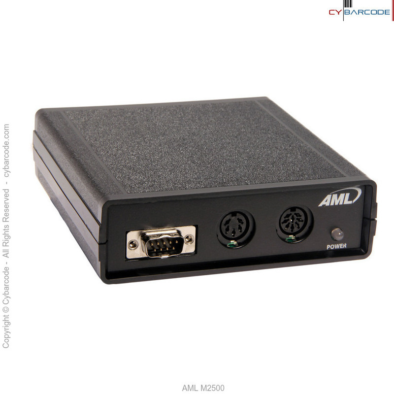 The AML M2500 can be tailored to individual applications by scanning barcodes from the setup menu.Available connections are 9-pin male 'D' for laser/CCD scanners, 5-pin DIN for wands and 8-pin DIN for magnetic stripe readers.