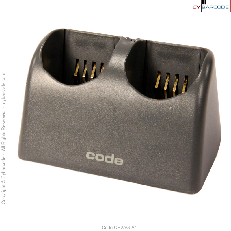 Code CR2AG-A1 is a 2 slot Battery Charger. The Two-Bay Battery Charger can be configured to recharge batteries and/or a hand held configured barcode reader