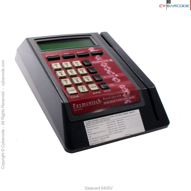 DataCard 640SV credit card terminal. This countertop unit has an easy to read display and large numeric keys.