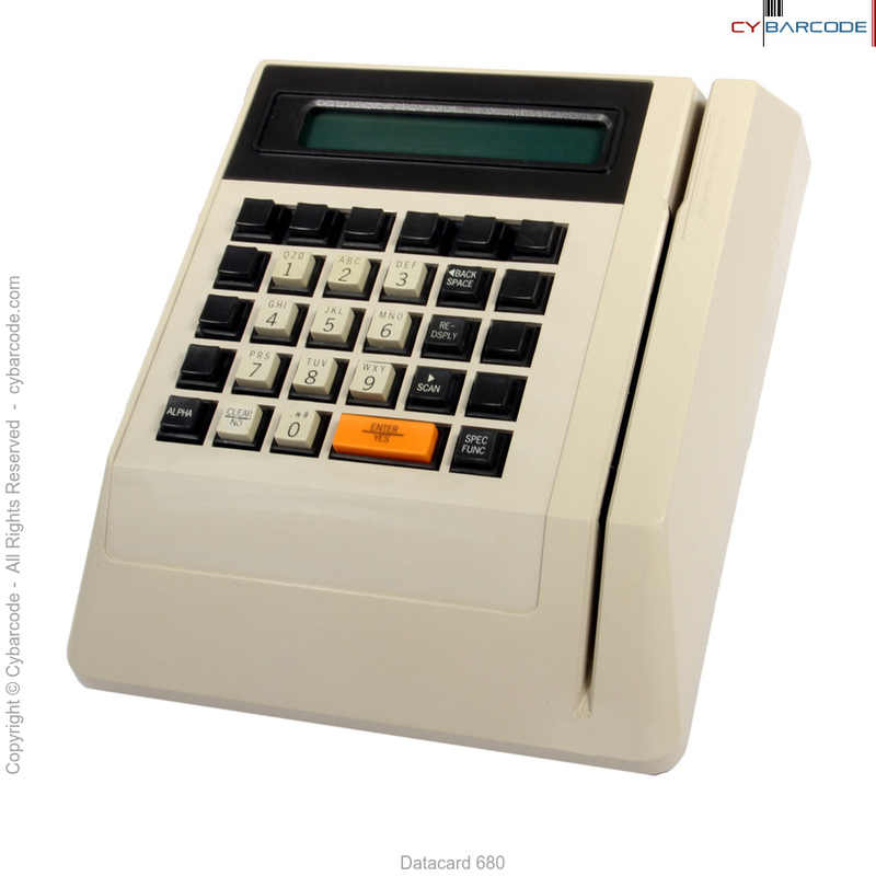 DataCard 680 credit card terminal. This countertop unit has an easy to read display and large numeric keys with a credit card magnetic stripe reader.