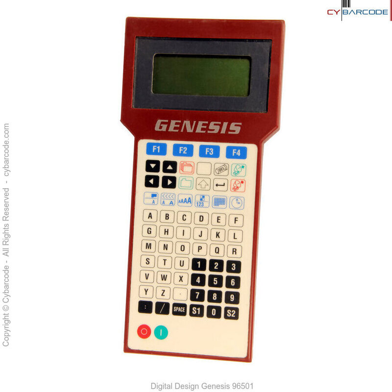 The controller is the heart and brains of the GENESIS system. It is completely portable and communicates with the print station(s) via an Infrared Link, much as a TV remote control. It is powered by 4 pen light batteries that will last for at least a year. All commands that need to be executed by the GENESIS are entered into the controller.