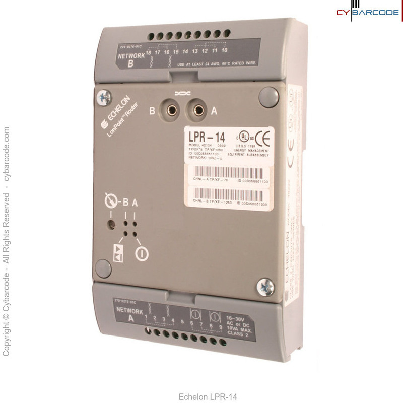 The LPR-14 Modules are two-channel LONWORKS (ANSI/EIA-709.1) routers that can interface two different twisted pair channels (e.g., a high speed 1.25 Mbps TP/XF-1250 backbone and a TP/FT-10 free topology channel), manage network traffic, increase the total number of LONWORKS devices, or increase the amount of cabling in a system.