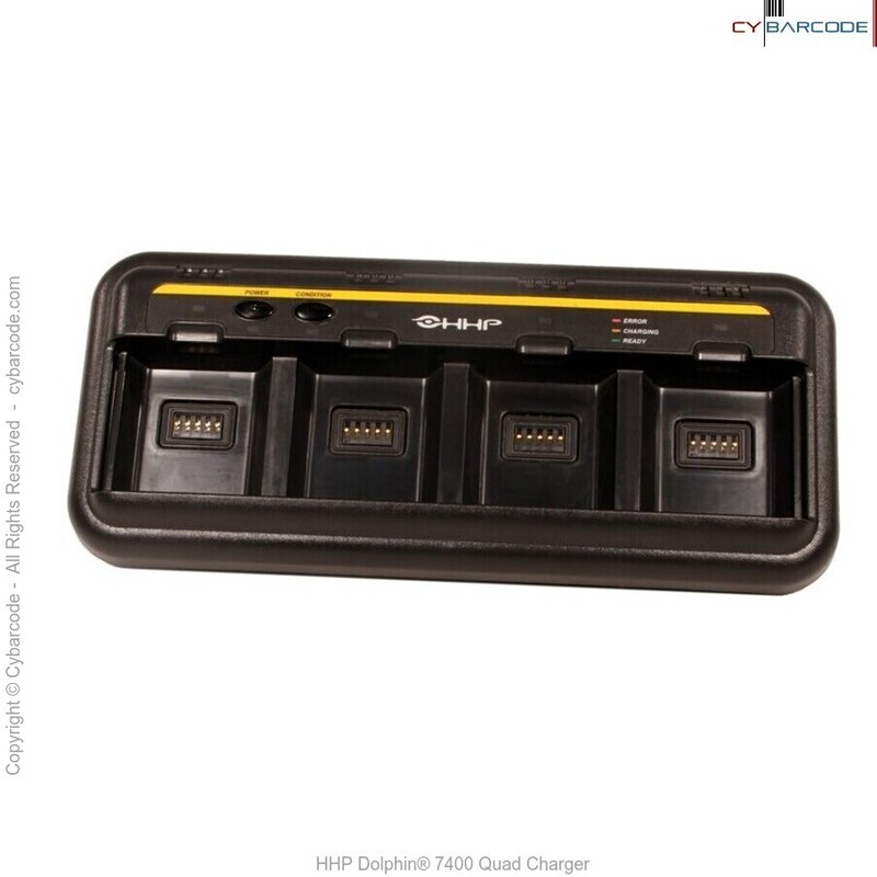 The HHP Dolphin 7400 Quad Battery Charger is a four bay charging station for Dolphin 7400 batteries. It will charge four NiMH (Nickel Metal Hydride) Dolphin 7400 mobile computer batteries in 2.5 hours.