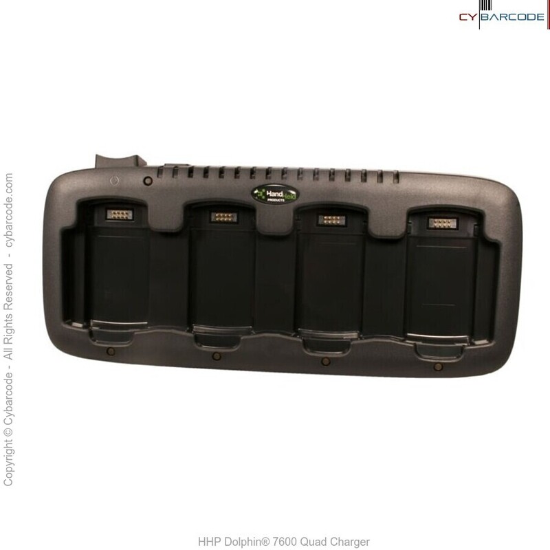 The HHP Dolphin 7600-QCE Quad Battery Charger is a four bay charging station for Dolphin 7600 batteries. It will charge four Dolphin 7600 mobile computer batteries in 2.5 hours.