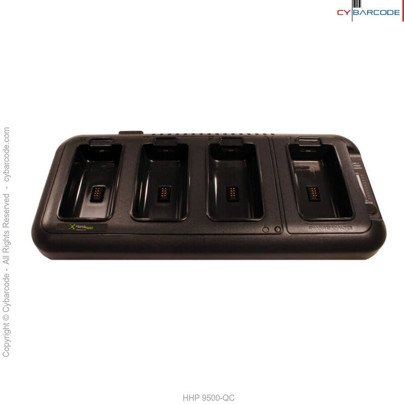The Dolphin 9500-QC Quad Charger is a four-slot battery charger for Dolphin 9500 and 7900 Series batteries. When placed in the Quad Charger, Lithium ion batteries charge to full capacity in four hours. Each charging slot works independently to control the charging of individual battery packs.