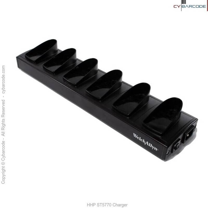 Hand Held Products, formerly Welch-Allyn, Model 5770 six bay universal charging strip recharges up to six ScanTeam 5770 units at a time.