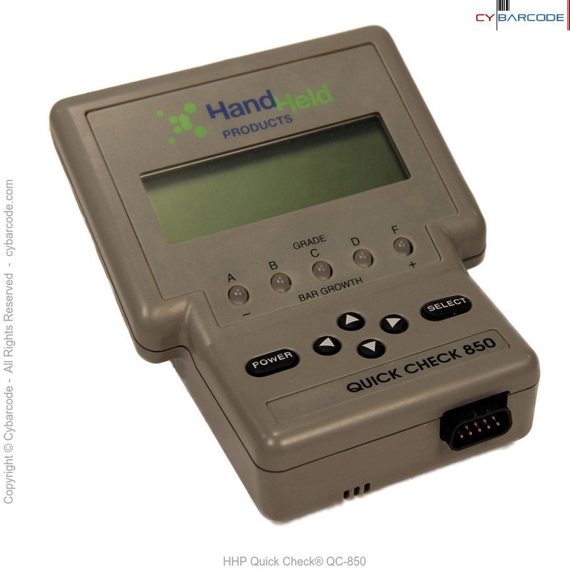 The Quick Check 850 Verifier is a full-featured bar code verifier compatible with all major linear bar code symbologies and reads all industry applications (SCC retail shipping-UCC/EAN ITF, UCC/EAN 128; UPC Coupon Code; AIAG; LOGMARS; HIBCC; SISAC; CTIA/ABCD; Bookland; CCBBA). Hand Held Products QC800 series verifiers analyze bar code quality against traditional quality parameters and ANSI/CEN/ISO bar code print quality guidelines.