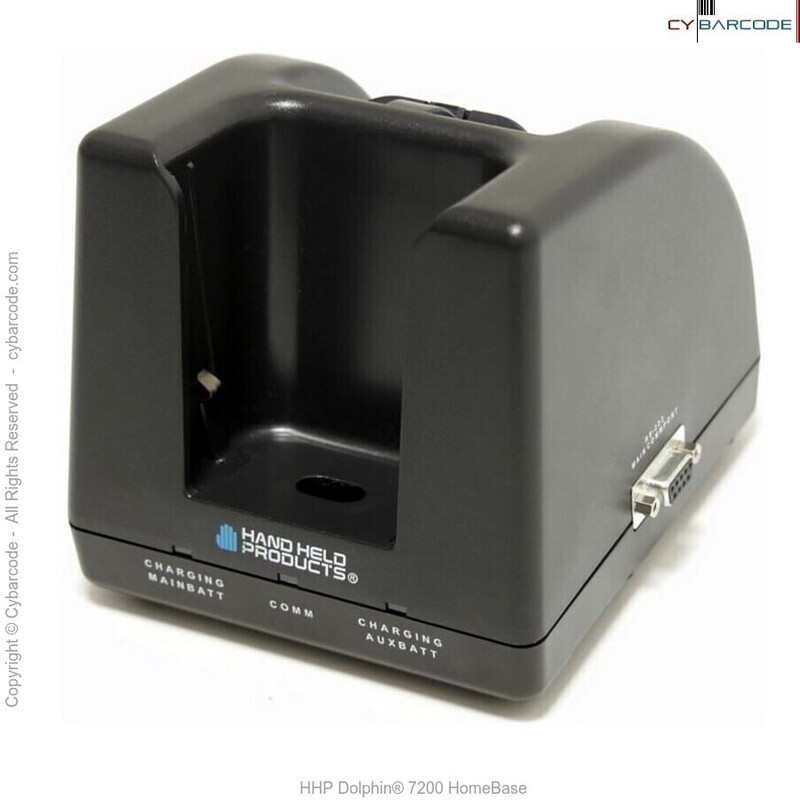 The HHP Dolphin 7200 HomeBase is a charging and communication cradle for a Dolphin handheld computer. The HomeBase is a safe, convenient storage holder for a Dolphin terminal and a spare charged battery pack. The cradle is compatible with all models in the Dolphin 7200 family of handheld computers.