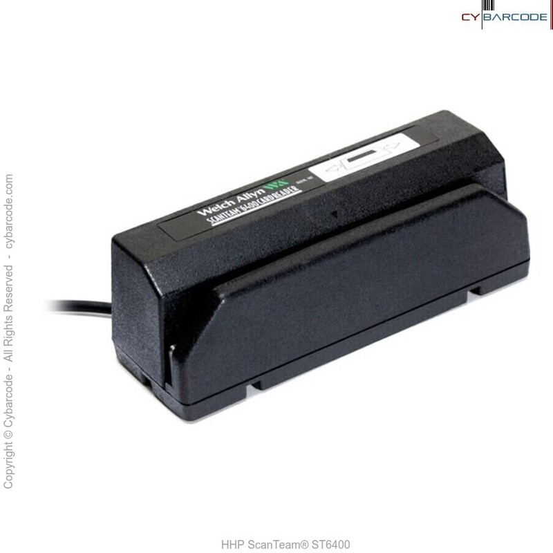 The ScanTeam 6400 series of bar code badge readers from Hand Held Products is designed for reading bar codes on cards, tickets, badges, and other items which can be passed through a slot.