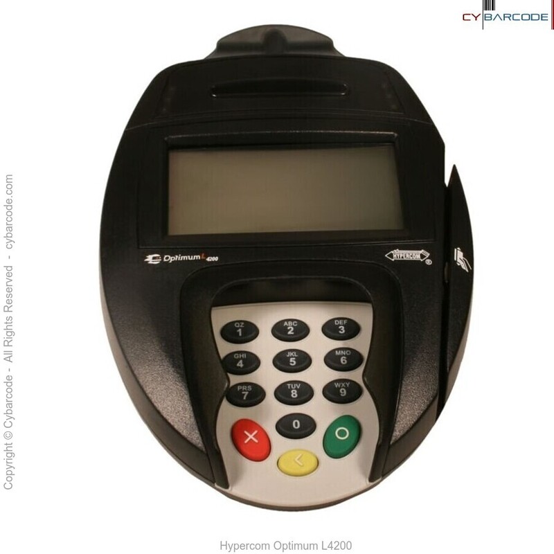 The L4200 's unique recessed keypad with integrated privacy shield, compact footprint and ergonomic design, make it the terminal of choice for any retailer.The Optimum L4200 is equipped with Hypercom's innovative, dual-sided, bidirectional magnetic stripe reader.