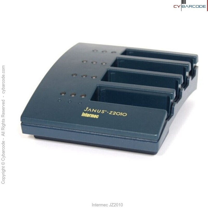 The Intermec JZ2010 battery charger is an accessory for the JANUS 2010 series readers. The charger lets you charge (and discharge) up to four JANUS 2010 reader battery packs at one time.