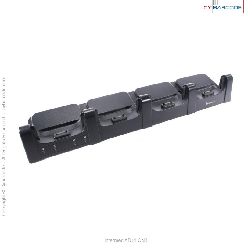 The Intermec Multidock (Model AD11) provides Ethernet connectivity and charges up to four CN3 computers in less than five hours at normal room temperature.