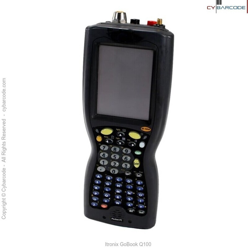 The Itronix GoBook Q-100, model IX100, is an IP-65 rated handheld with an Intel 206 MHz StrongArm processor with 64 MB SDRAM, 1/4 VGA color TFT screen, Microsoft Pocket in flash ROM,1 RS-232-C serial port, 1 RS232/USB client port, IrDA port, a user accessible type III PC slot,Type I Compact Flash slot for additional data and application storage and a speaker/microphone.