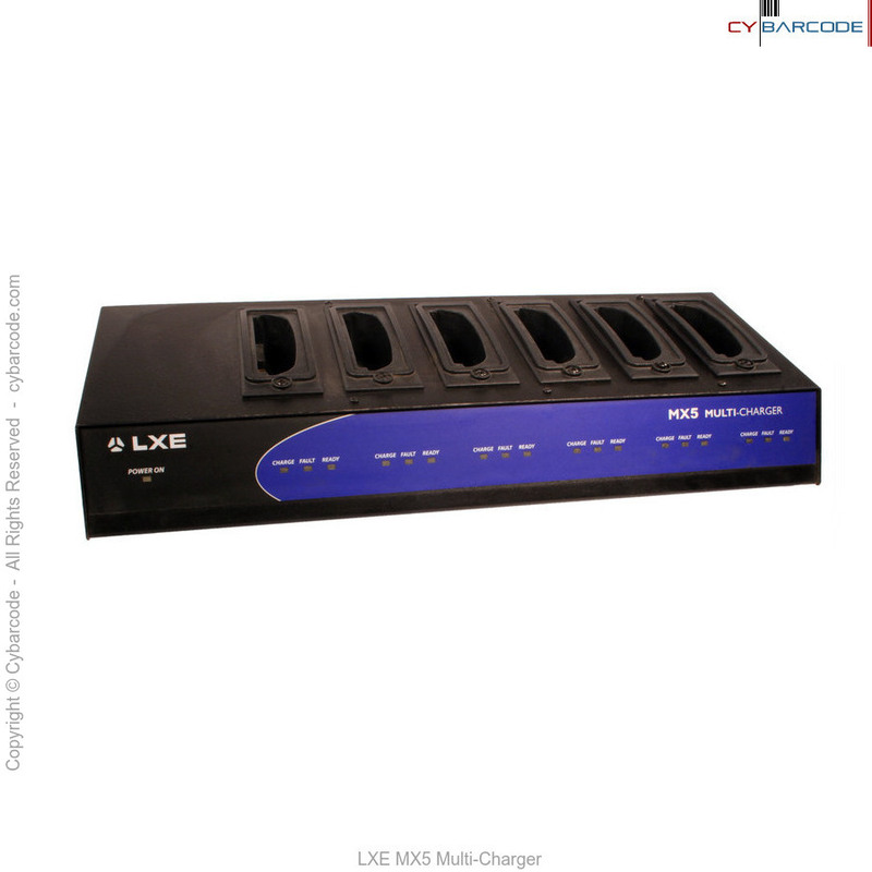 The LXE MX5 Multi-Charger is designed to simultaneously charge six LXE Rechargeable Lithium Ion Battery Packs in less than four hours, depending upon battery pack temperature and conditions.