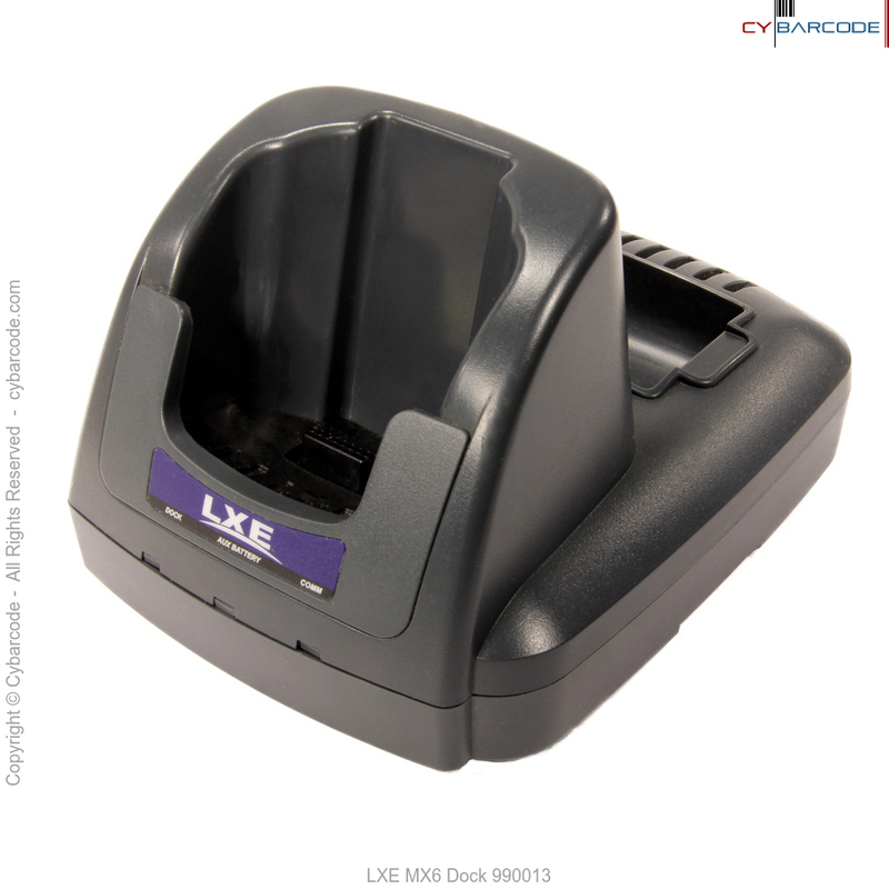 LXE Charging dock 990013 for use with LXE MX6 handhelds. This sturdy desktop unit cradles the the MX6 while charging the battery. This dock also has a separate battery slot for charging a second battery simultaneously.