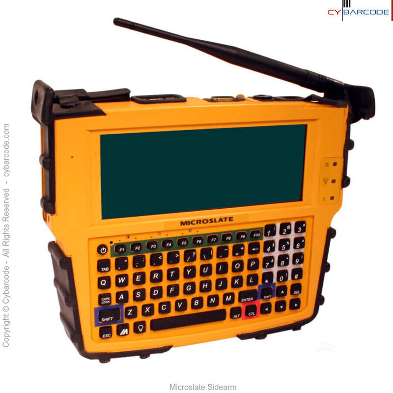 Microslate Sidearm all-terrain hand held PC. This heavy-duty, durable unit has a full alpha-numeric keypad and large display screen. It is rugged enough for outdoor and industrial use.
