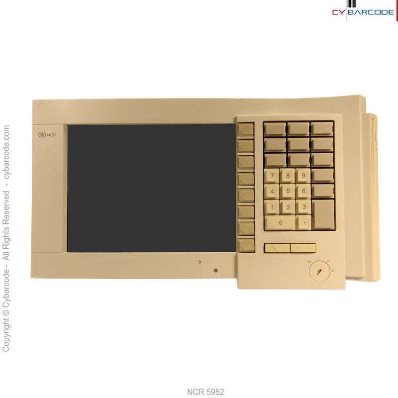 The NCR 5952 Wedge DynaKey is a point-of-sale keyboard with a VGA flat panel Liquid Crystal Display (LCD). Unique to the 5952 DynaKey is a set of dynamic keys located beside the LCD. These keys change function depending on the software application appearing on the LCD. Also unique are two up/down scroll keys.