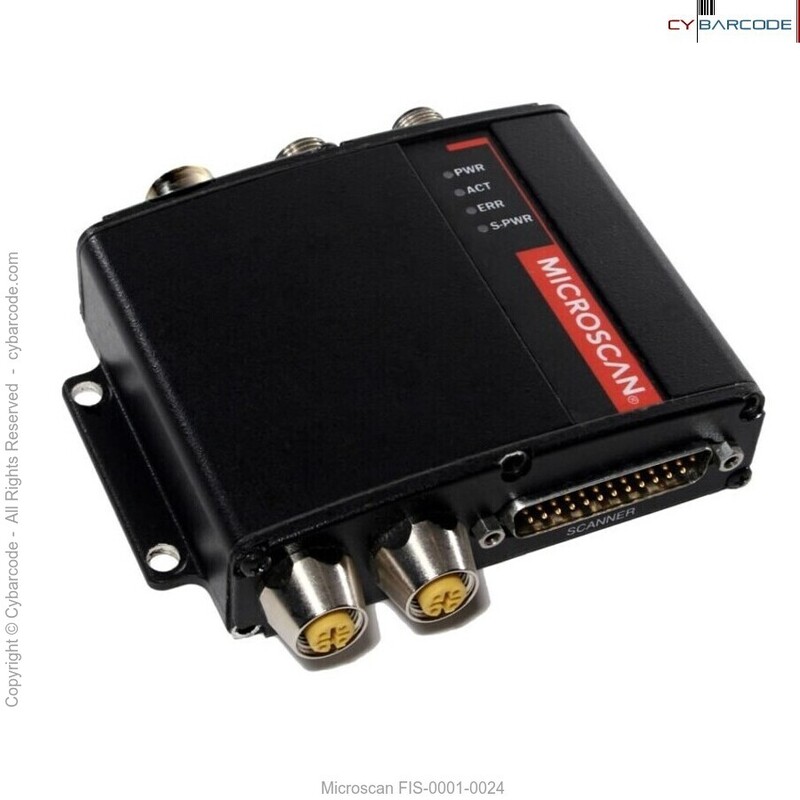 The Microscan FIS-0001-0024 barcode module is a small, compact, durable unit with 4 mounting holes that allow for flexibility in positioning.