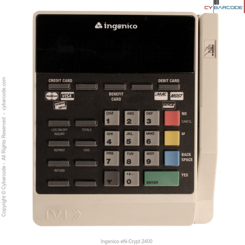 The Ingenico eN-Crypt 2400 is a consumer-activated POS payment terminal for use at retail checkouts and locations such as bank branch teller windows.