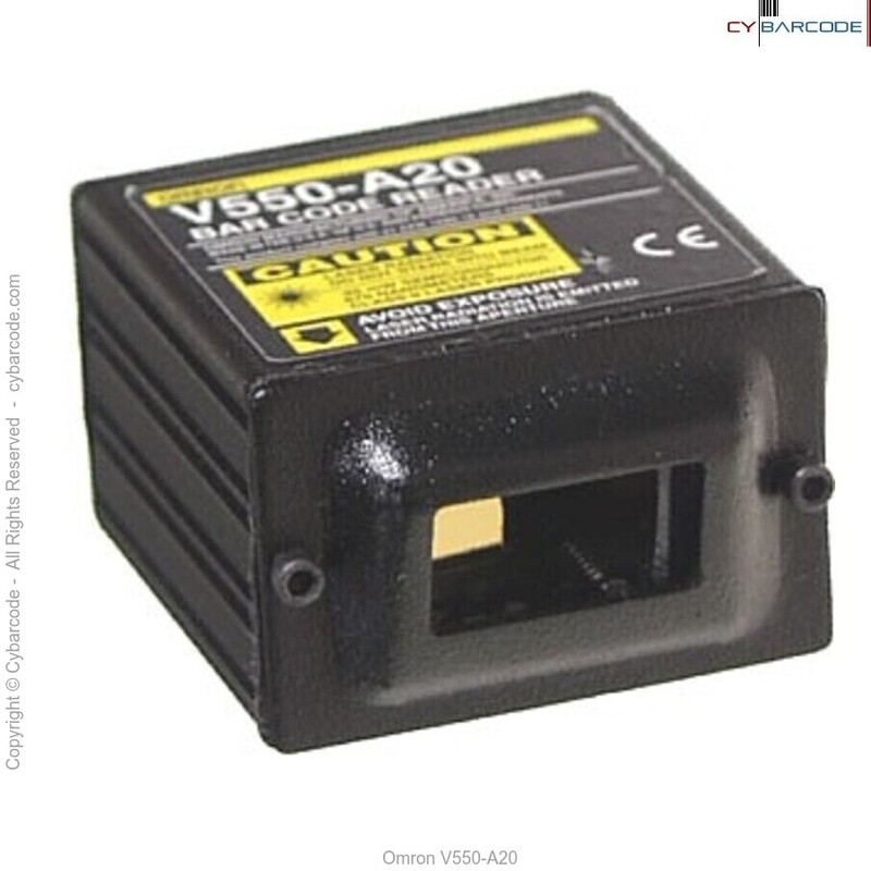 The Omron model V550-A20 barcode scanner provides highly accurate reads even from skewed or low-quality labels. Its automatic laser control feature automatically adjusts for bar codes of varying color, contrast and reflectance.