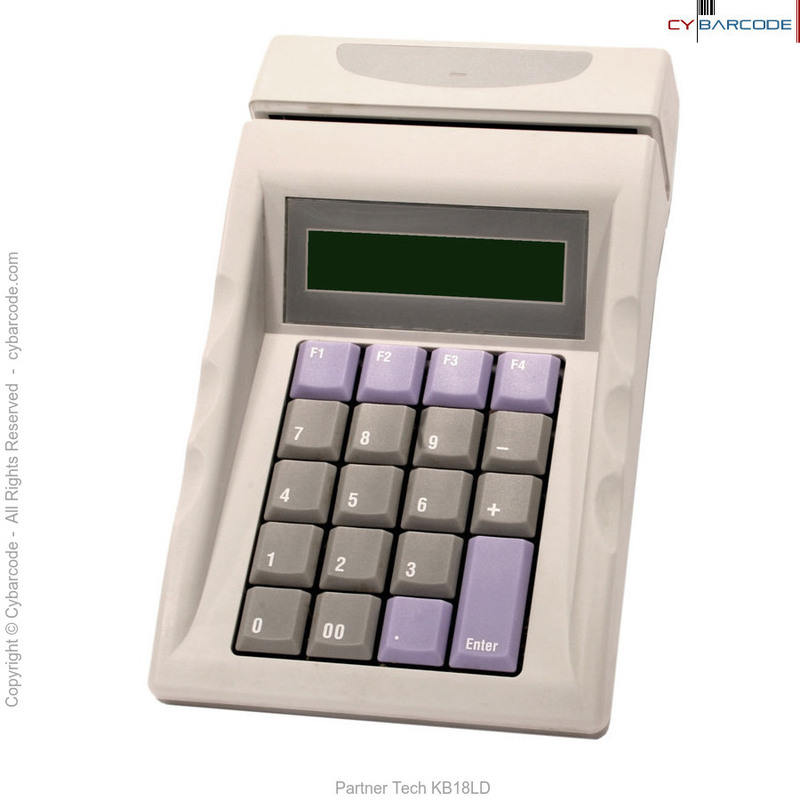 The Partner Tech KB-18LD2 keypad with an optional barcode or magnetic card reader enables a user to add enhanced functionality to any standard computer. It can easily connect to an existing PC using a serial or keyboard wedge interface.