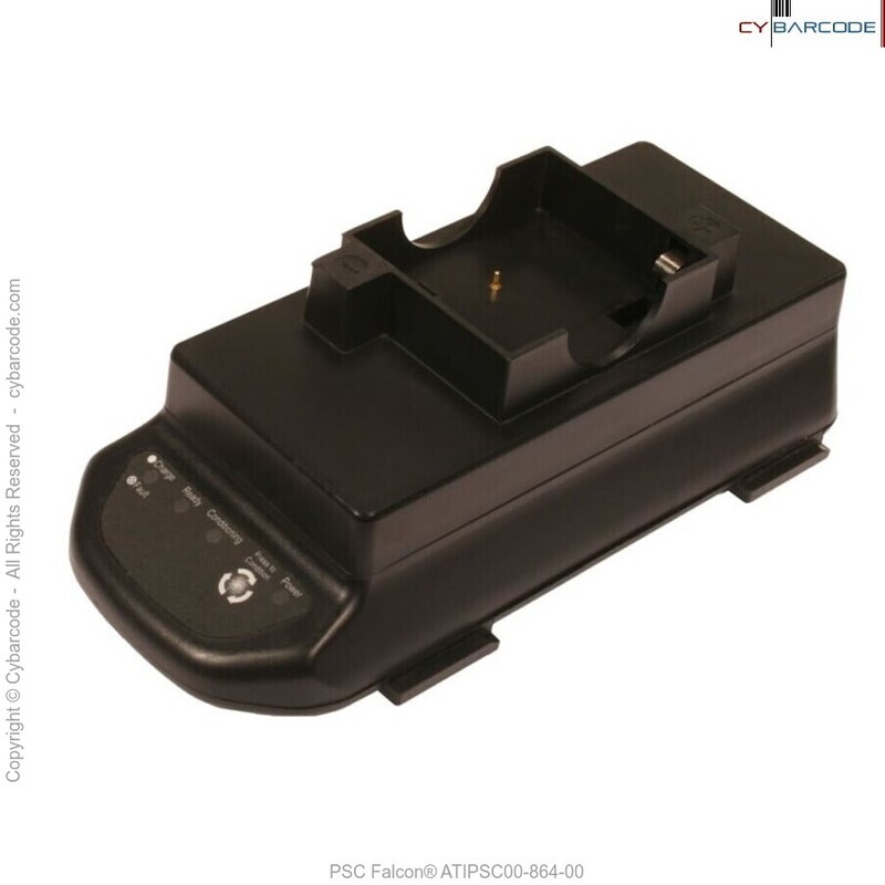 The PSC Battery Charger Adapter 6402-0007 is used with the PSC 4 slot battery charger (ATI2000PSC064). It charges the batteries for the PSC PT2000 and Falcon portable data terminals # 00-864-00.