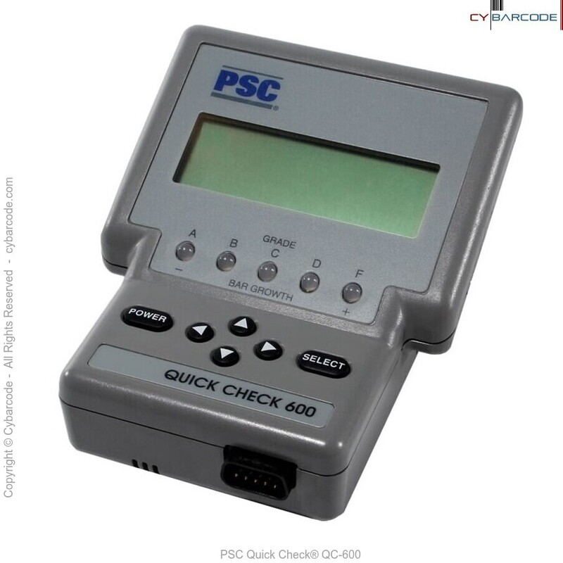 The PSC QC600 verifier analyzes bar code print quality guidelines. The QC-600 includes all standard symbologies and is manufactured and traceable to NIST (National Institute of Standards and Technology) standards developed by the UCC (Uniform Code Council) and AIM (Automatic Identification Manufacturers).