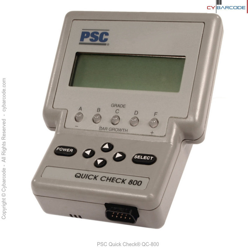 The PSC Quick-Check 800 Verifier offers the convenience of simple aim-and-shoot verification through the use of a handheld laser bar code reader or wand.The QC800 can quickly perform pass/fail testing of dimensional and format quality parameters like average bar deviation, wide-to-narrow ratios, encodation, ANSI/CEN/ISO decodability and more.