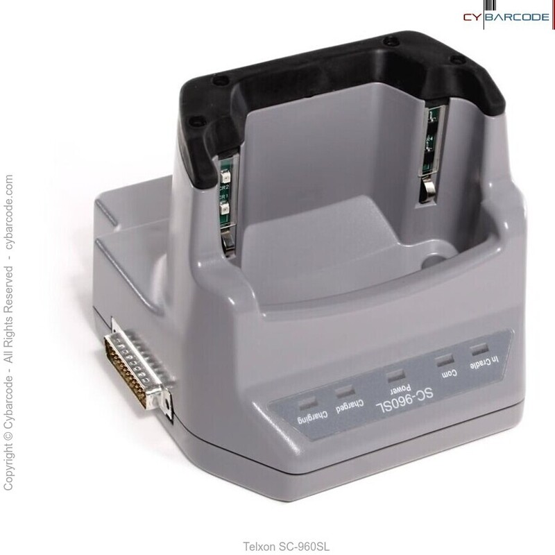 The Telxon SC-960SL Single Slot Cradle is used to charge the PTC960SL batteries as well as enable intercommunication between the terminal and a host computer.