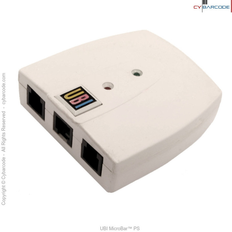 The UBI MicroBar PS is a universal solution for connecting data capture devices. Use the PS to decode the output of a simple bar code wand or as a platform for advanced applications. It can connect multiple inputs to PCs or terminals via their keyboards or RS-232 ports.